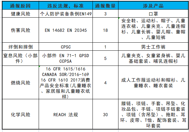 歐盟市場化學類召回30例,原因皆為產(chǎn)品不符合REACH法規(guī),其中: