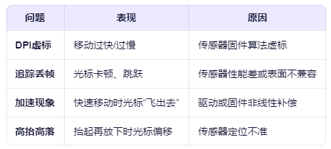 標(biāo)稱DPI ≠ 實際DPI!很多低價鼠標(biāo)虛標(biāo)參數(shù),實際追蹤不準(zhǔn),導(dǎo)致“飄移”“丟幀”“加速”等問題。